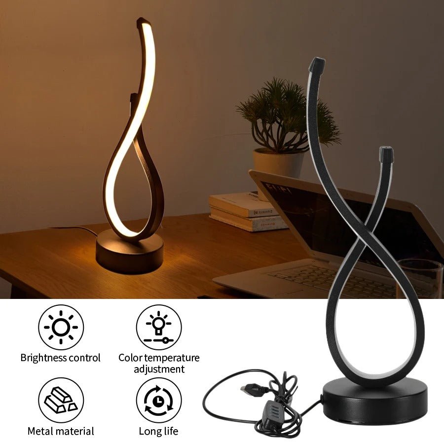 Modern Sculptural LED Table Lamp | Contemporary Ambient Light | Curved Metal Design